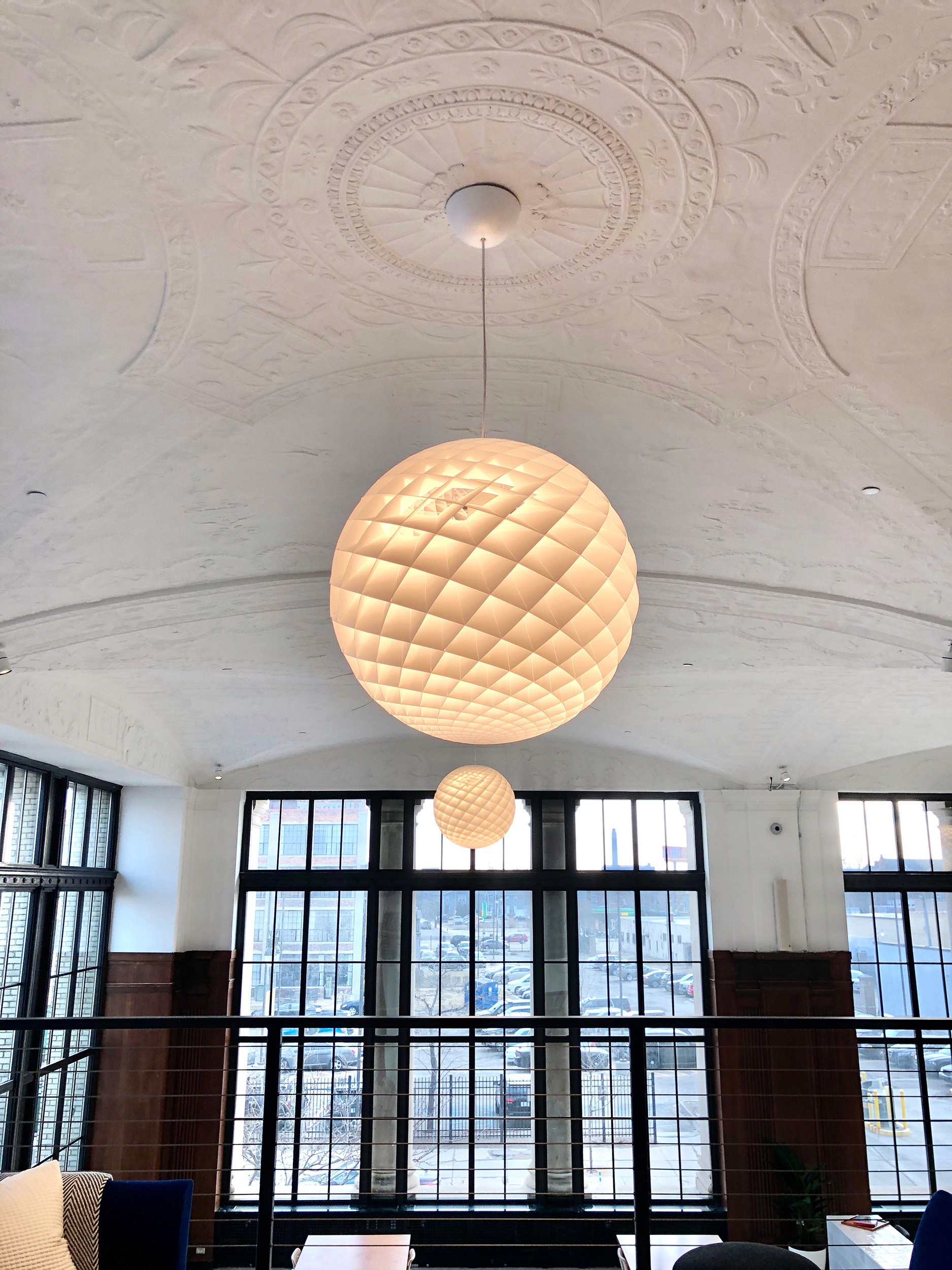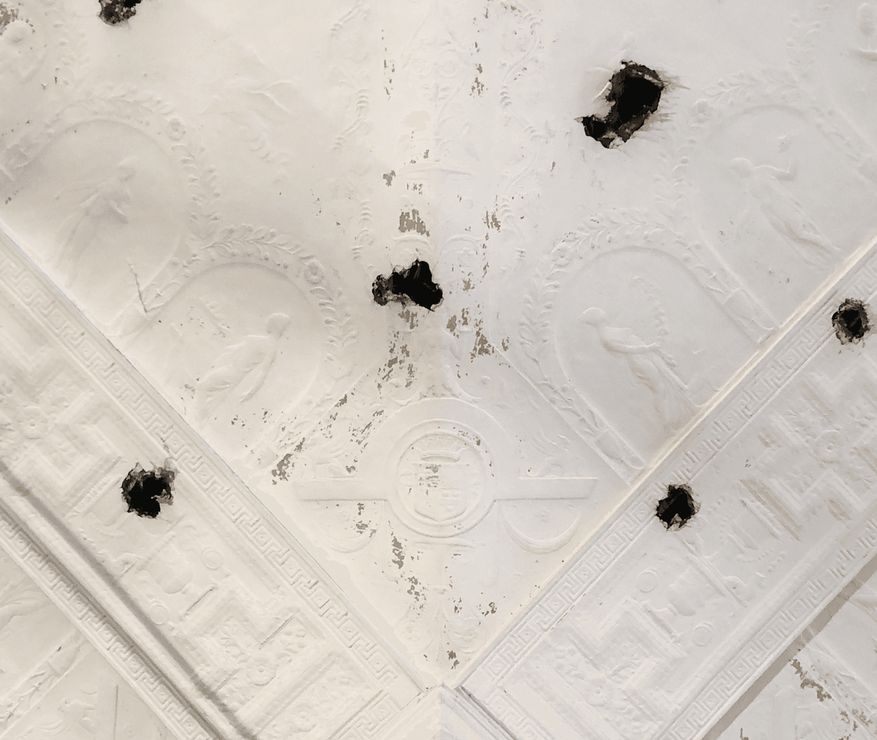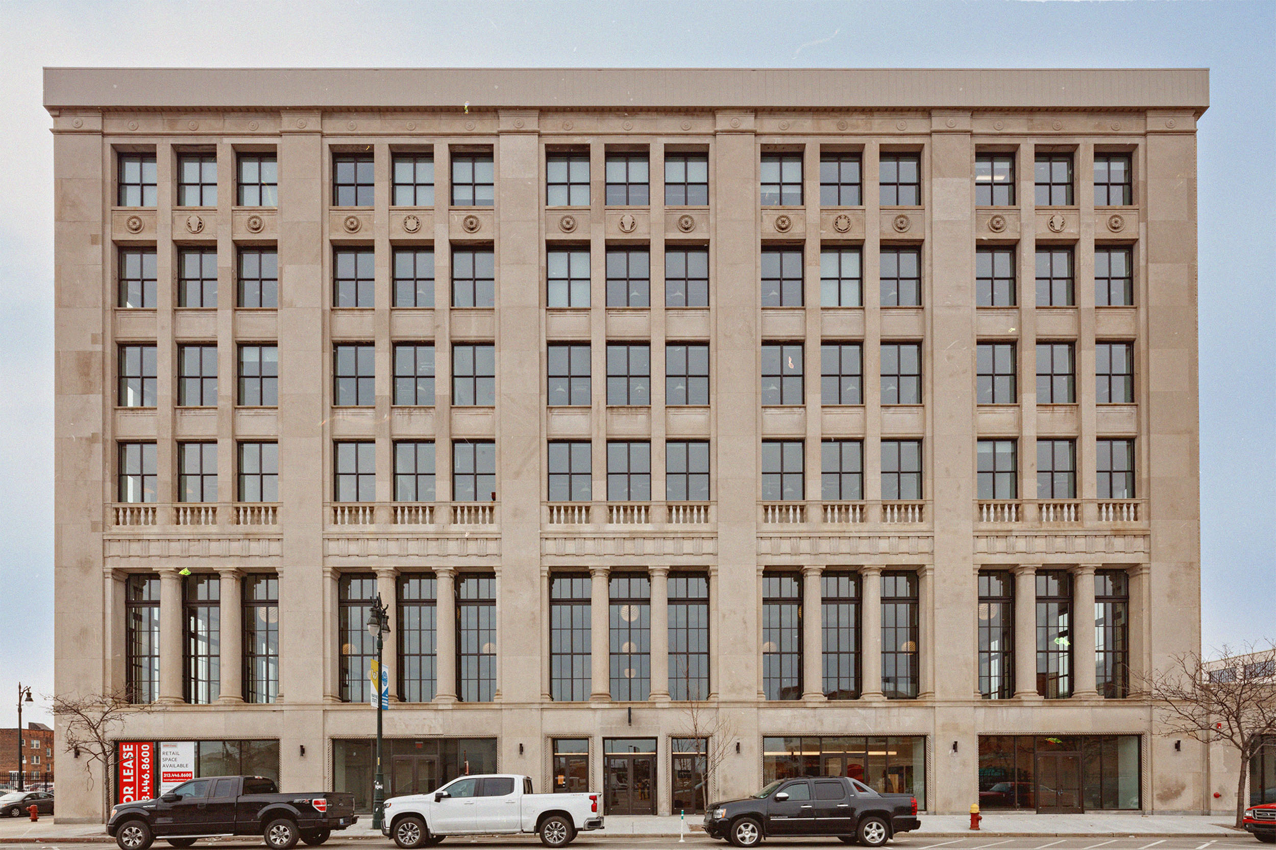The Cadillac Building was in disrepair at the time of possession, though traces of its history could still be seen via Cadillac's emblem embossed in the plaster ceiling.