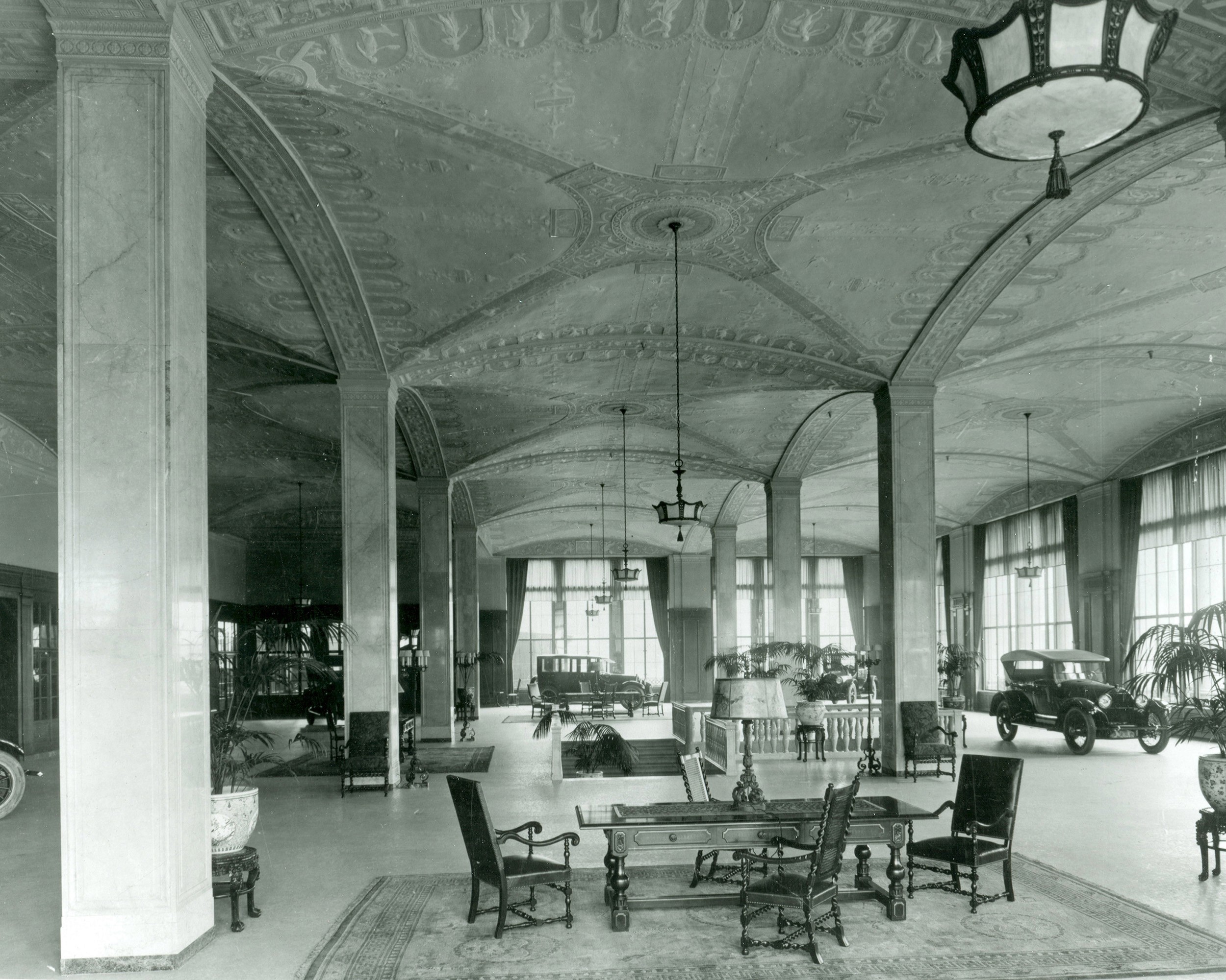 Archival research revealed Photos of the original Cadillac showroom, which featured model-T automobiles of the day resting atop opulent, oriental rugs.
